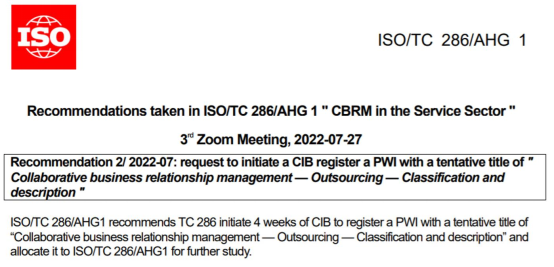 与会专家经过讨论后表示该提案有助于丰富合作关系管理国际标准供给,深化合作关系管理在服务外包领域的应用,也符合服务外包产业发展的全球趋势。任务组同意该提案推动注册为国际标准预工作项目(PWI),这意味着中国将牵头制定服务外包领域的国际标准。