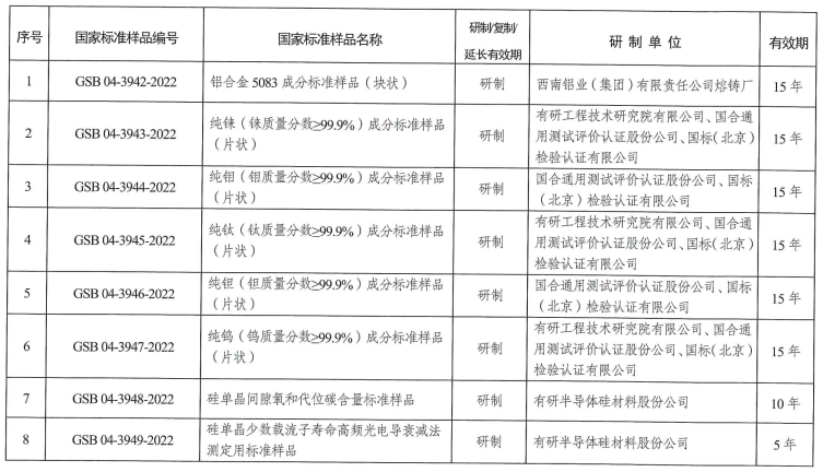 市场监管总局(标准委)批准《铝合金5083成分标准样品(块状)》等29项国家标准样品及14项国家标准样品延长有效期