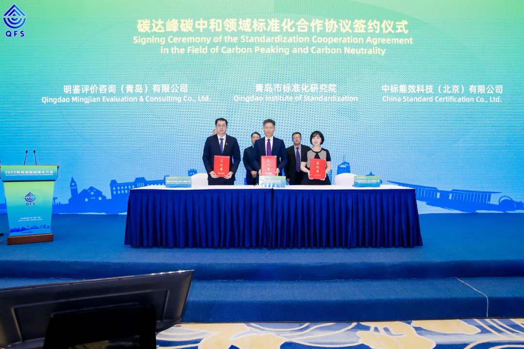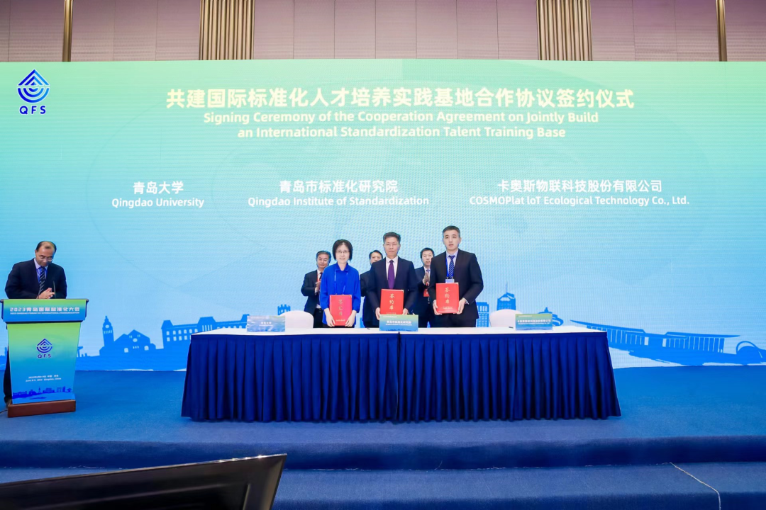 会议期间,青岛市标准化研究院、卡奥斯物联科技股份有限公司、青岛大学签订了共建国际标准化人才培养实践基地合作协议;青岛市标准化研究院、中标能效科技(北京)有限公司、明鉴评价咨询(青岛)有限公司签订了碳达峰碳中和领域标准化合作协议,共同推动我国国际标准化人才的培养,建设高水平人才培养体系,引领企业标准化高质量发展,充分发挥由国际标准化组织(ISO)、国家标准化管理委员会(SAC)和青岛市人民政府共同设立、青岛市标准化研究院建设运营的国际标准化培训基地(青岛)的平台和资源优势,为标准化发展奠定基础。