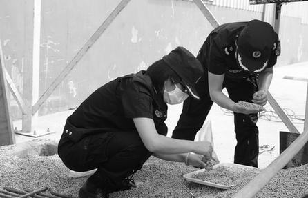 8月22日,山东淄博检验检疫局工作人员在山东邦基饲料有限公司对进境大豆进行后续监管。该局按照《进出境粮食检验检疫监督管理办法》,指导辖区进境粮食定点加工企业建立进境粮食装卸、运输、加工、下脚料处理等环节防疫制度,并进行严密监管,防止外来杂草传入定植,维护辖区生态安全。(姜迪来 摄)