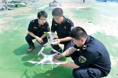 卫生技术人员对比赛场地利用无人机实施卫生监测