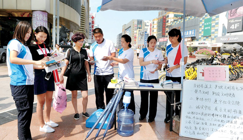 天津局志愿者走上街头为公众提供志愿服务