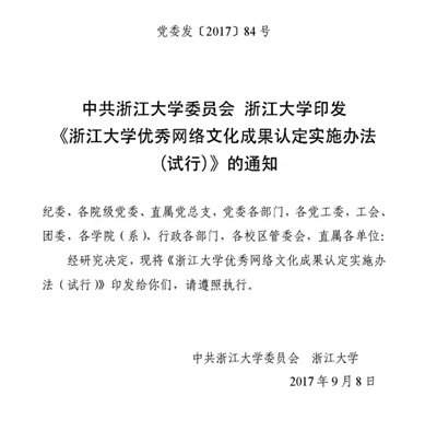 对此,浙大相关部门回应媒体称,出台优秀网络文化成果认定办法,旨在探索人文社会科学研究成果呈现方式的多样化。人文社科研究不能远离现实,认定优秀网络文化成果,是为了回答在互联网时代,如何利用新型传播手段扩大优秀学术成果影响面这一重要课题,认定优秀网络文化成果不会降低有关学术标准。