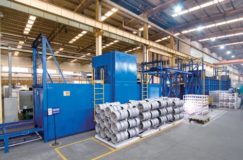 据介绍,兴龙轮毂自成立以来就以人为本不断推进全员精益改善与创新,激发员工的主动创新热情,营造全员创新氛围,在生产过程中借助精益生产推广,通过节拍优化、设备改造升级,不断提升自动化水平,实现效率逐年持续提升,过去3年通过基层员工的主动识别,在提高生产效率方面的自发性改善项目就达到1093项。以过程在制的控制方面为例,通过全员改善和工序间拉动,产品在制品周转时间由原来的45小时缩短为33小时,实现了同行业标杆水平。在工艺创新上,兴龙轮毂打破以往低压铸造全风冷技术模式的束缚,通过改进创新,积极摸索全新的低压铸造水雾冷和全水冷工艺,使S116、S117、S118产品不仅满足了日本VIA产品标准和客户质量要求,还实现了年增产7.8万件的开拓性成果。