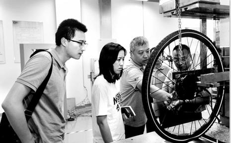 日前,摩拜单车创始人胡玮炜女士赴江苏检验检疫自行车检测中心参观交流。江苏检验检疫自行车检测中心用品牌、能力和服务赢得了企业的认可,摩拜、OFO、永安等共享单车巨头纷至沓来,与检测中心签约合作,为共享单车做好“安全体检”。检测中心创立20年来,与国际知名检测认证机构TUV、SGS、ITS、BV等建立了合作关系,出具的检测报告“畅通”全球。( 陈 坚 摄)