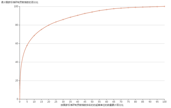 国家标准起草单位大数据分析系统,综合了国家标准馆现有的所有标准化数据,全方位、多角度的对标准起草、主导研制、参与研制工作进行了分析和总结,拓展得出包括指数地区分布、企业合作关系、标准贡献指数、年度变化趋势等重要的数据成果。