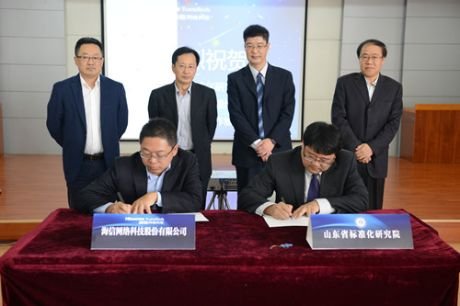 10月13日上午,省标准化院开展第48届“世界标准日”宣传庆祝活动,活动邀请有关部门、单位和企业代表畅议智慧城市标准化工作。省质监局副巡视员郭大雷出席活动并致辞,省质监局、省标准化院、海信网络科技、寿光市智慧办等企事业单位代表围绕“智慧城市”做了典型发言和经验介绍。活动同时举行了省标准化院成为国家智慧城市标准化总体组副组长单位揭牌仪式,以及省标准化院与海信网络科技股份有限公司智慧城市标准化战略合作协议签署仪式。