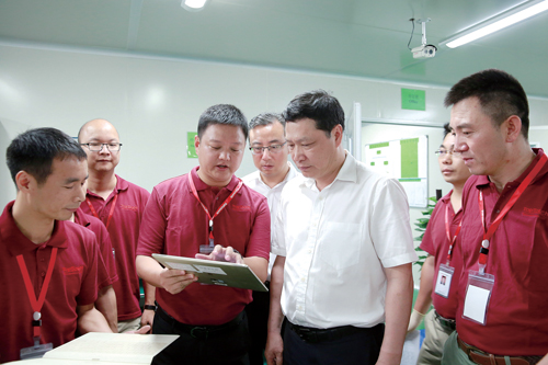 龙华区委书记余新国到高新技术企业调研,支持企业创新发展、以质取胜。