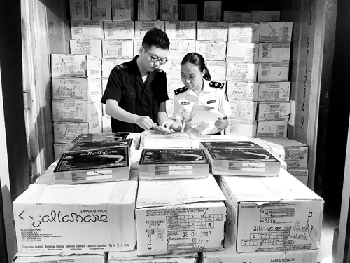10月11日,两批远洋自捕的阿根廷红对虾从深圳蛇口口岸首次入境,重49680千克、货值320696美元。为保障产品品质不受影响,深圳蛇口检验检疫局工作人员在12℃以下的封闭月台完成现场查验工作,并根据规定抽取样品送实验室检测,待检测合格后出具《入境货物检验检疫证明》并放行。 方 莹 摄