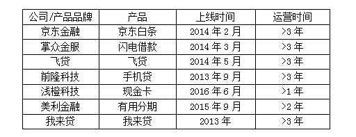 分析:除了浅橙科技和美利金融两家外,其它公司产品运营周期均大于3年。