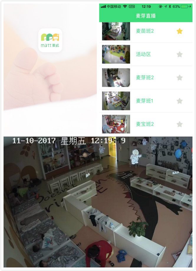 麦忒教育为此独家研发了一套智能系统——麦宝通APP。麦宝乐园全国各园区,都安装了360度无死角视频监控系统,高清摄像头可以俯瞰园区各个角落。监控同时连接手机麦宝通APP,家长可通过麦宝通观看“麦芽直播”,随时观察孩子在园区的衣食起居,游戏学习。