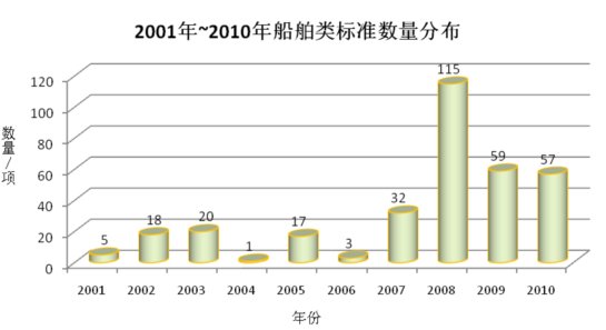 2001—2010年船舶类标准数量分布