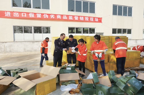 销毁假冒伪劣鞋类产品