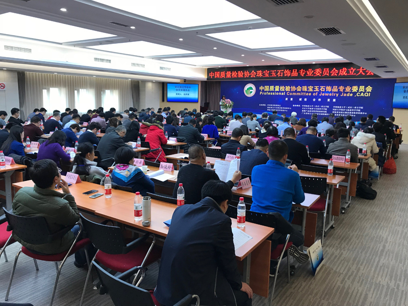 2017年12月2日,中国质量检验协会珠宝玉石饰品专业委员会在京成立。中国质量检验协会、国家珠宝玉石质量监督检验中心、国家首饰质量监督检验中心、中国地质大学(北京)珠宝学院、中国地质大学(武汉)珠宝学院、北京大学地球与空间科学学院、同济大学海洋与地球科学学院、新疆产品质量监督检验研究院、国家黄金钻石制品质量监督检验中心、广东省珠宝玉石及贵金属检测中心、江苏省黄金珠宝检测中心、周六福珠宝有限公司等100余家会员单位代表以及《中国珠宝杂志社》、《中国黄金报社》、《中国质量报》《中国标准化杂志社》等多家权威媒体共近200人参加了会议。