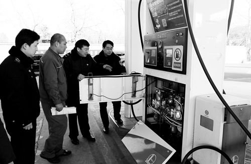 近日,北京市房山区质监局联合区环保局对辖区内完成油气回收在线监控系统改造的加油站进行了现场审查验收。在检查活动中,执法人员不仅对完成改造的3家加油站进行了审查验收,同时还现场审查所安装的压力传感器、浓度传感器和气体流量计的厂商制造许可资质等。国 艳 本报记者 宋平一 摄
