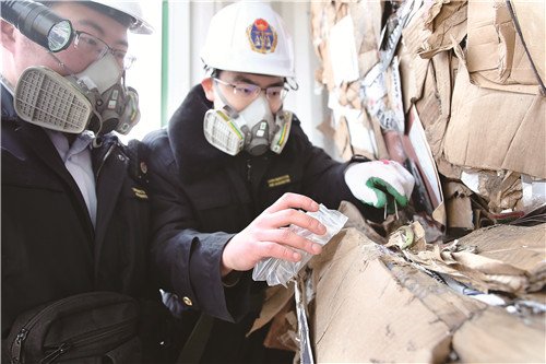 2月11日,浙江嘉兴检验检疫局工作人员从来自美国的入境废纸集装箱中截获2只绿色蜥蜴,经浙江检验检疫科学技术研究院嘉兴分院动植检实验室鉴定,确定为尾疹残趾虎。资料显示,尾疹残趾虎可携带多种寄生虫和病毒,一旦传入我国可能演变成外来入侵物种,对我国生态环境造成威胁,破坏生物多样性。王轶星 摄