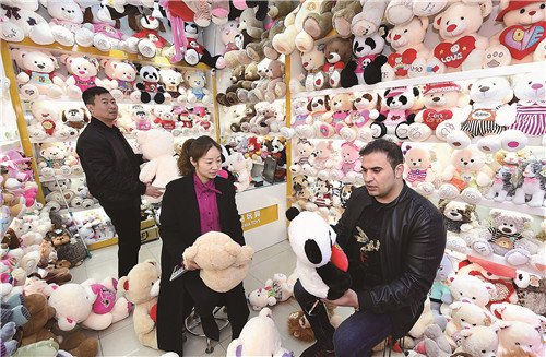 日本客商在位于义乌的中国小商品城国际商贸城挑选灯笼