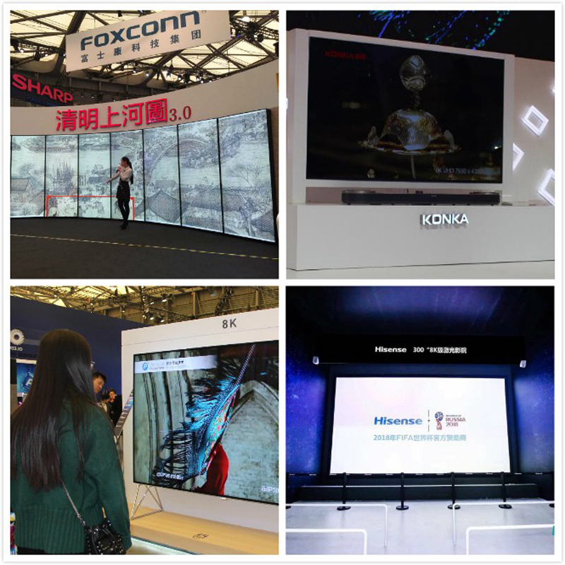富士康和夏普开创性地带来了8K超大显示屏,以8K超高清显示精细还原北宋名家张择端的《清明上河图》,成为本届AWE的亮点之一;海信首次展出了300英寸激光影院,超高清分辨率可达8K,为用户献上极具冲击力的观影体验;飞利浦、康佳均发布了自己的8K电视产品,致力于突破视觉极限,成为行业里8K电视的引领者。