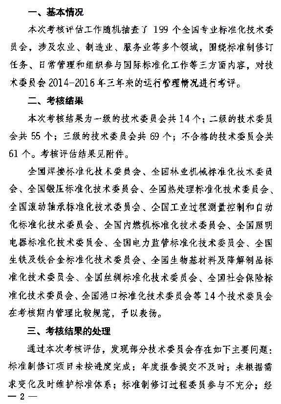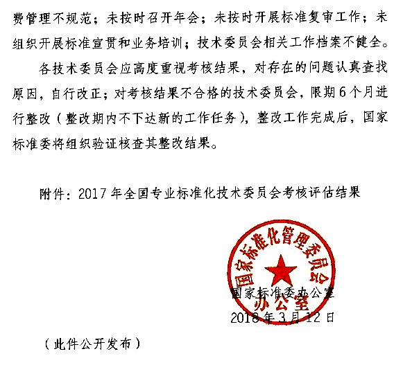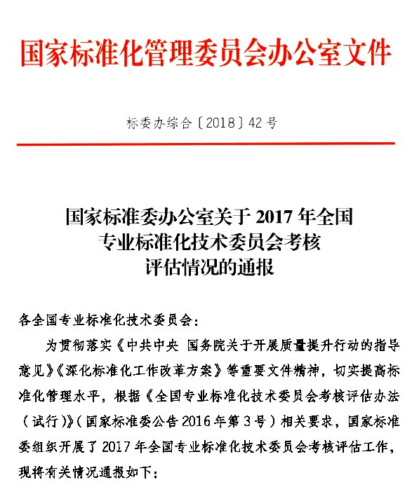 关于2017年全国专业标准化技术委员会考核评估情况的通报