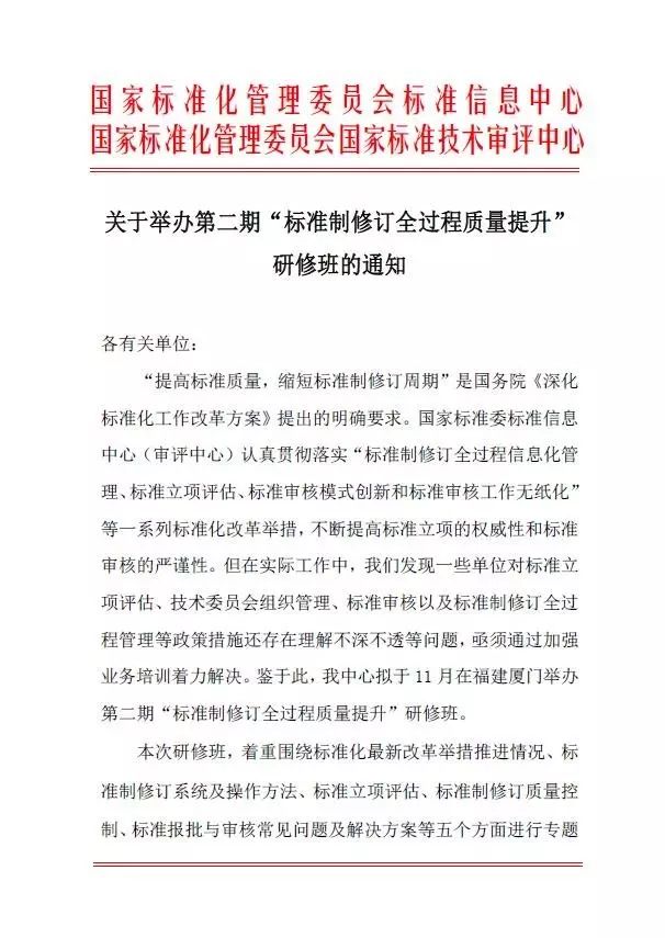 标准质量提升研修班第二期要开课了!