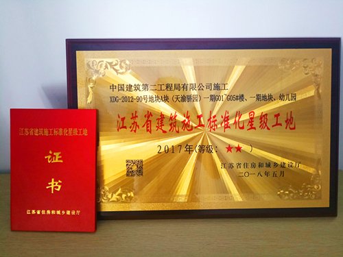 近日,江苏省住房和城乡建设厅公布了2017年江苏省建筑施工标准化星级工地考核结果,中建二局上海分公司无锡启迪协信天渝骄园一期项目荣获江苏省建筑施工标准化二星级工地称号。