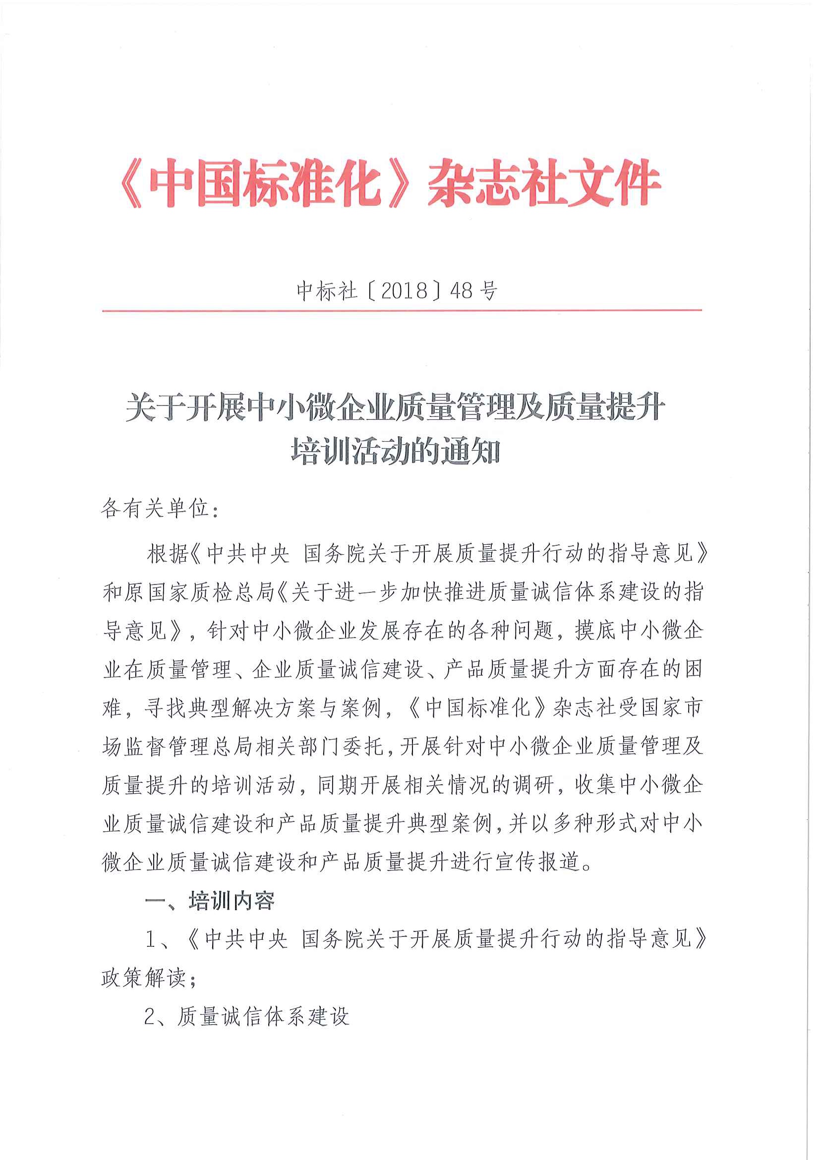 关于开展中小微企业质量管理及质量提升培训活动(珠海)的通知