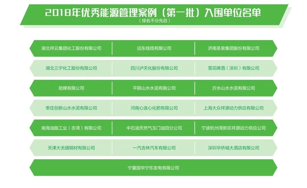 2018年优秀能源管理案例第一批入围单位名单发布