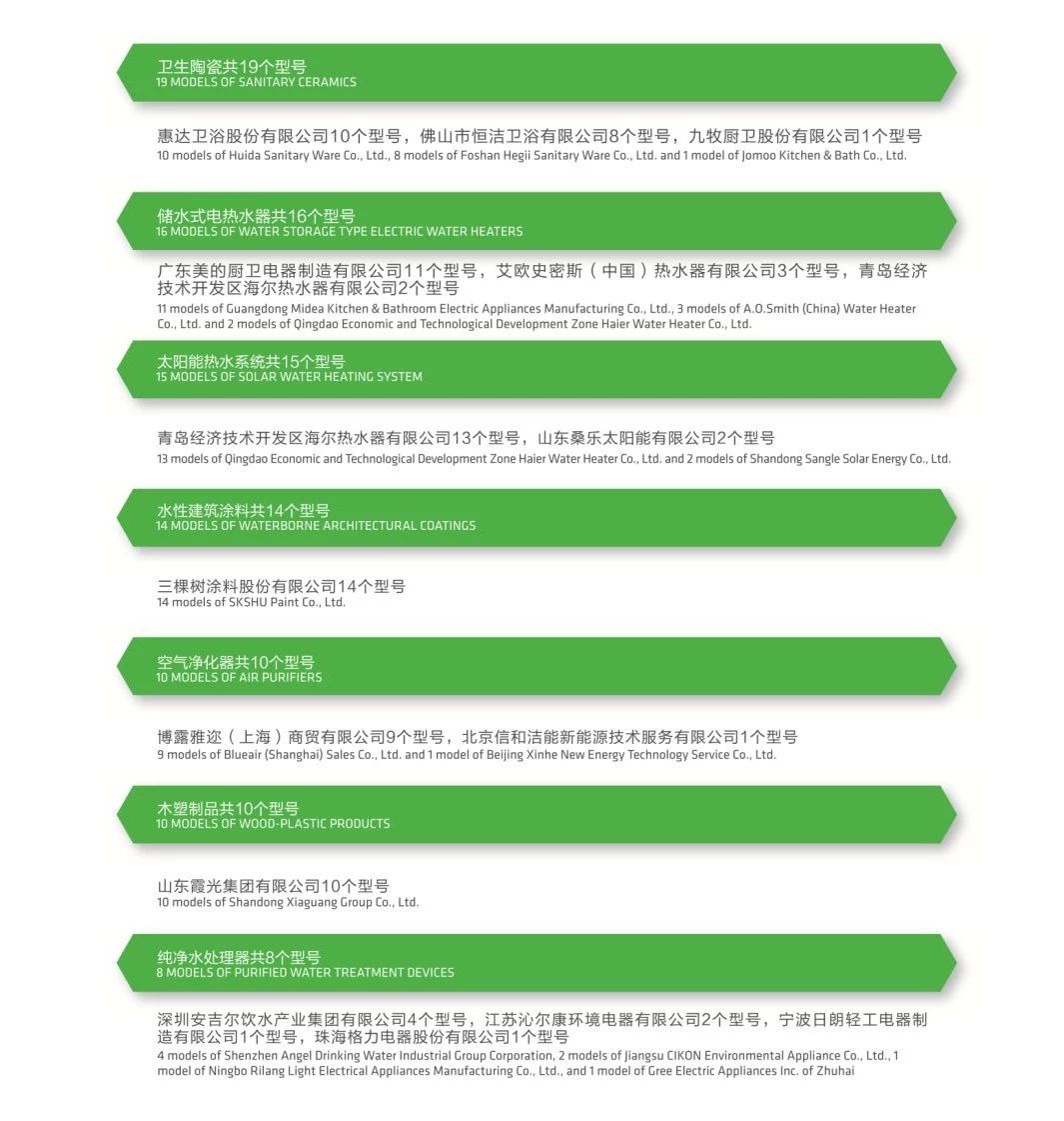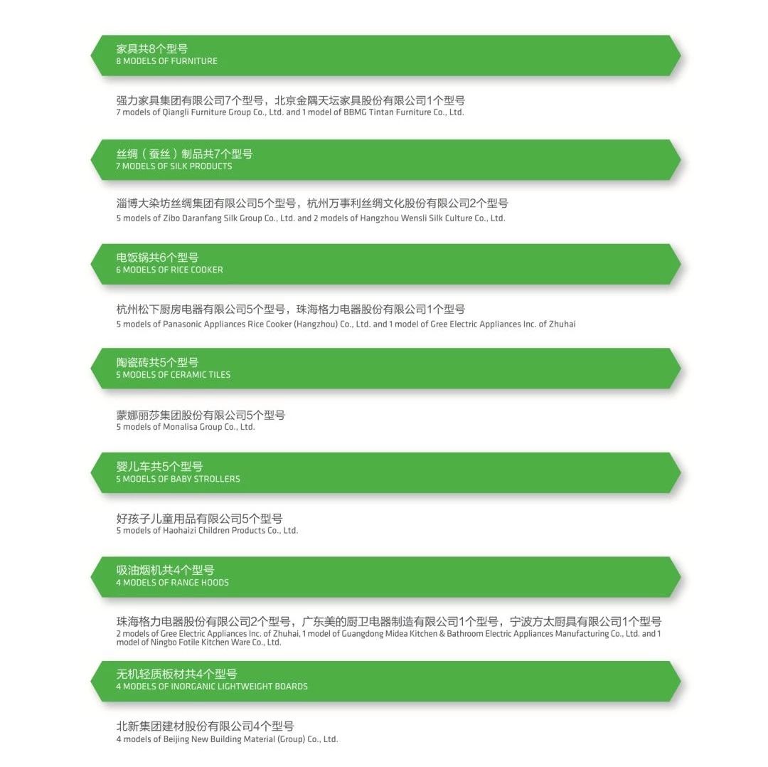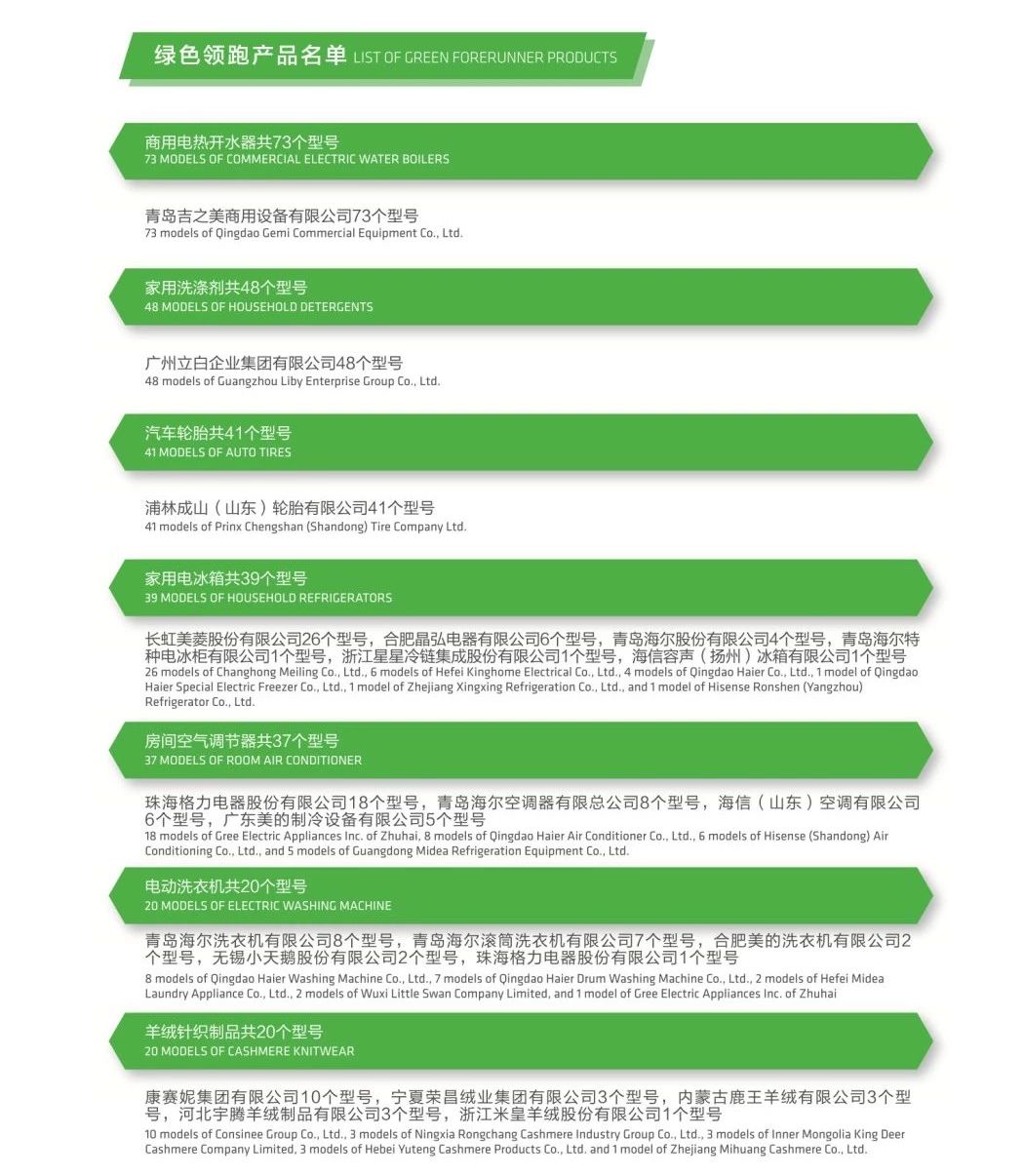 2018年绿色领跑产品名单如下: