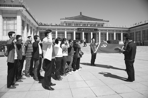 党员代表在山西武乡八路军太行纪念馆重温入党誓词。