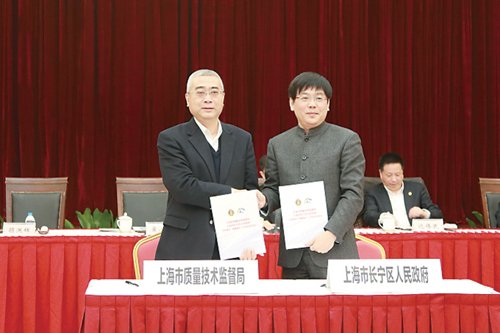 上海市质监局局长黄小路与长宁区区长顾洪辉就共同推进“质量强区”工作签订合作协议