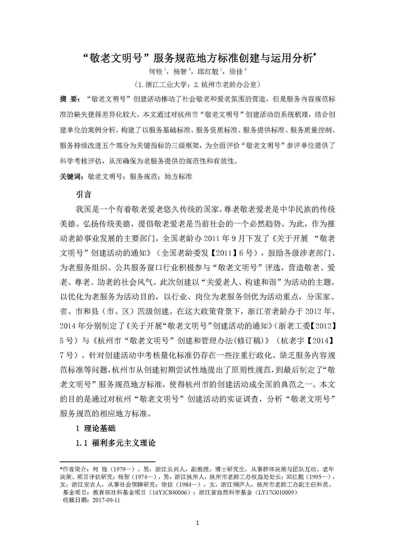 “敬老文明号”服务规范地方标准创建与运用分析