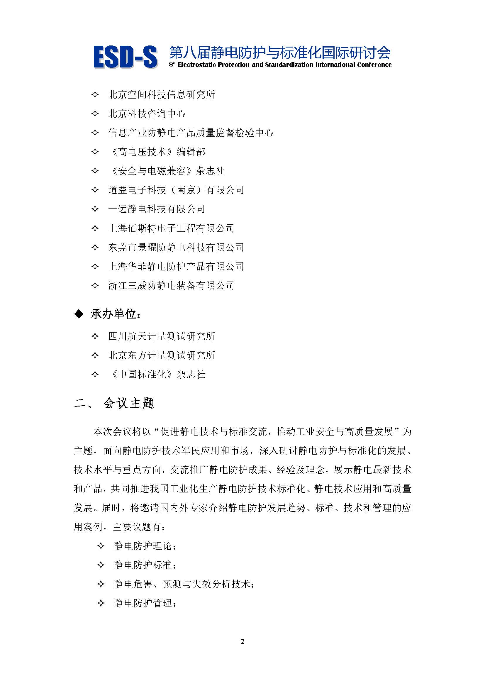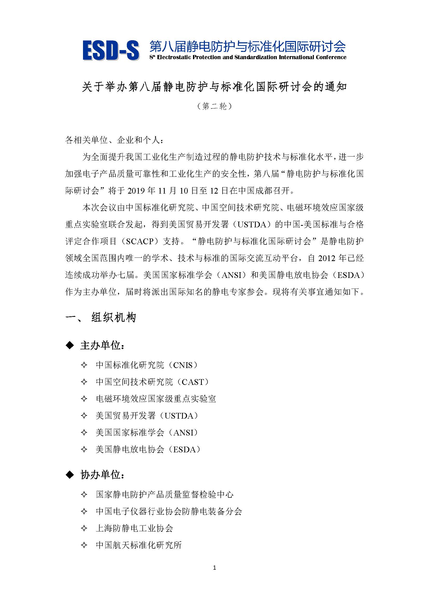 关于举办第八届静电防护与标准化国际研讨会的通知(第二轮)