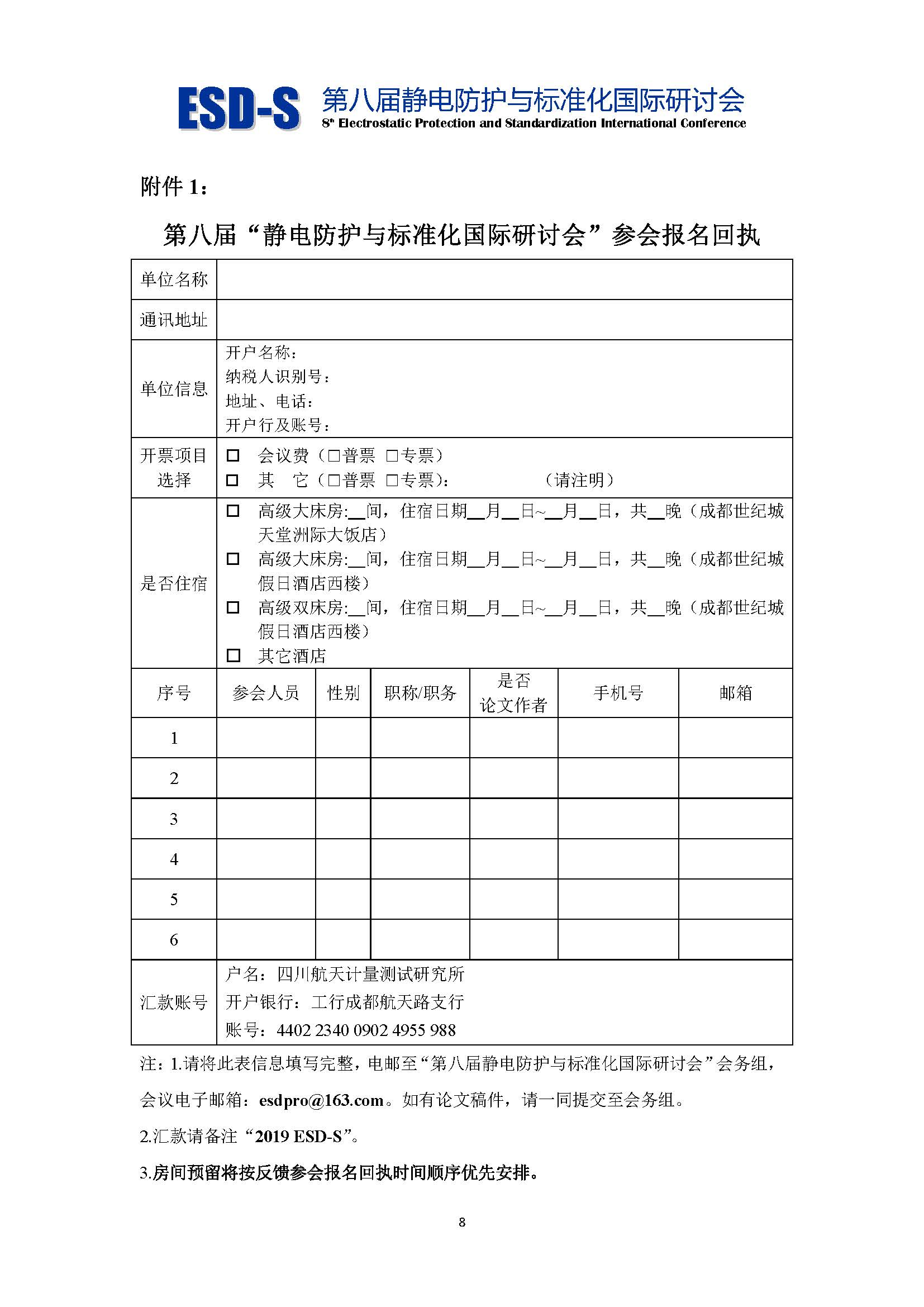 第八届静电防护与标准化国际研讨会参会报名回执.docx